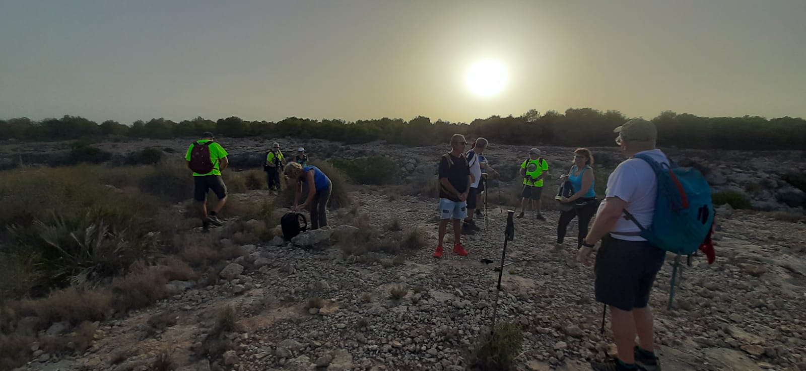 En esta ocasión nuestros compañeros Puri y Antonio nos prepararon una ruta en Santa Pola por los alrededores de la sierra del faro.Nos dirigimos en varios coches particulares desde los cines Anna de Sant Joan, hasta el lugar de encuentro en la citada localidad de Santa Pola en el barrio del Calvari (por la Ronda Norte a la altura de la calle Pablo Iglesias) y a la hora prevista los 14 integrantes nos pusimos en marcha.